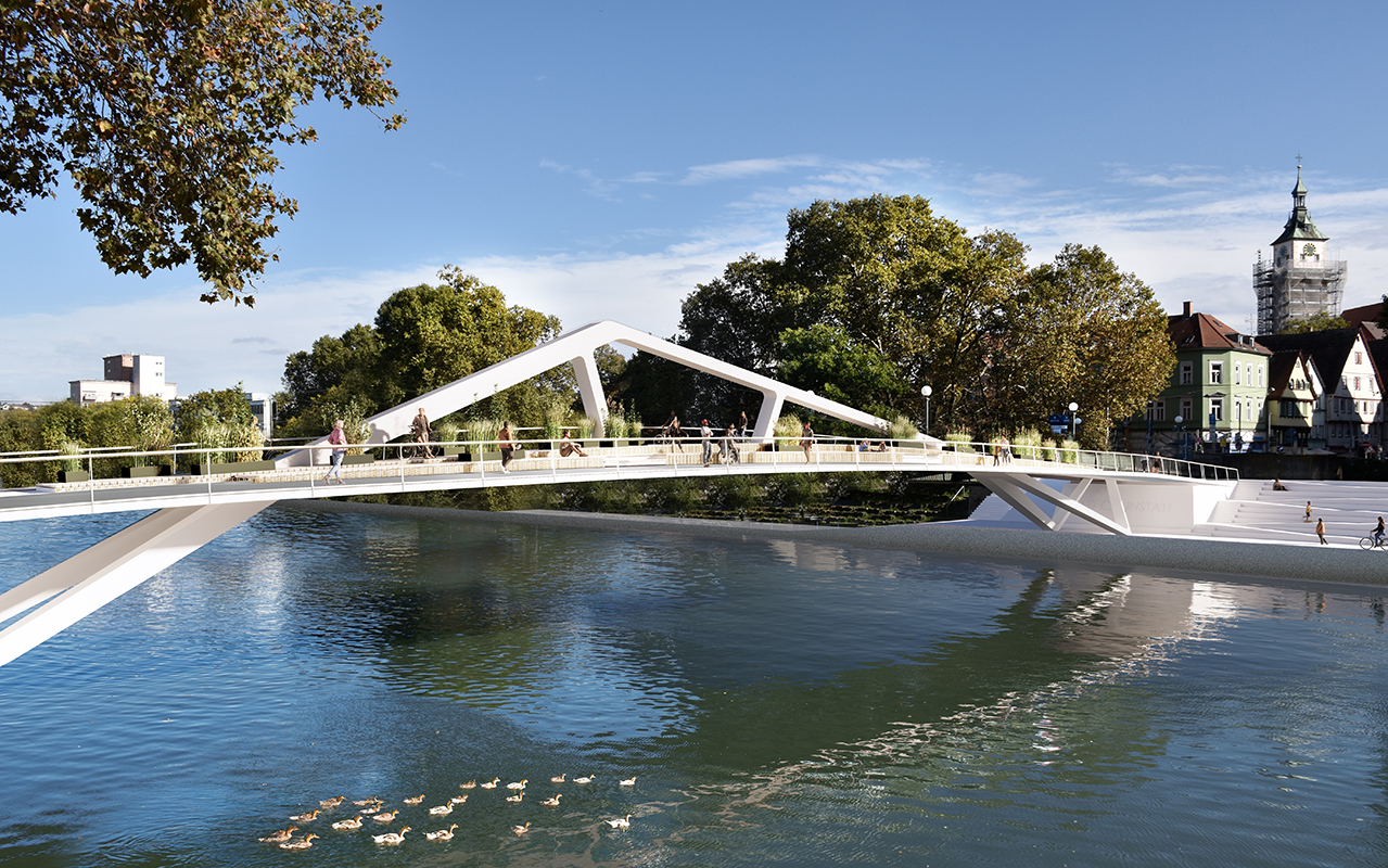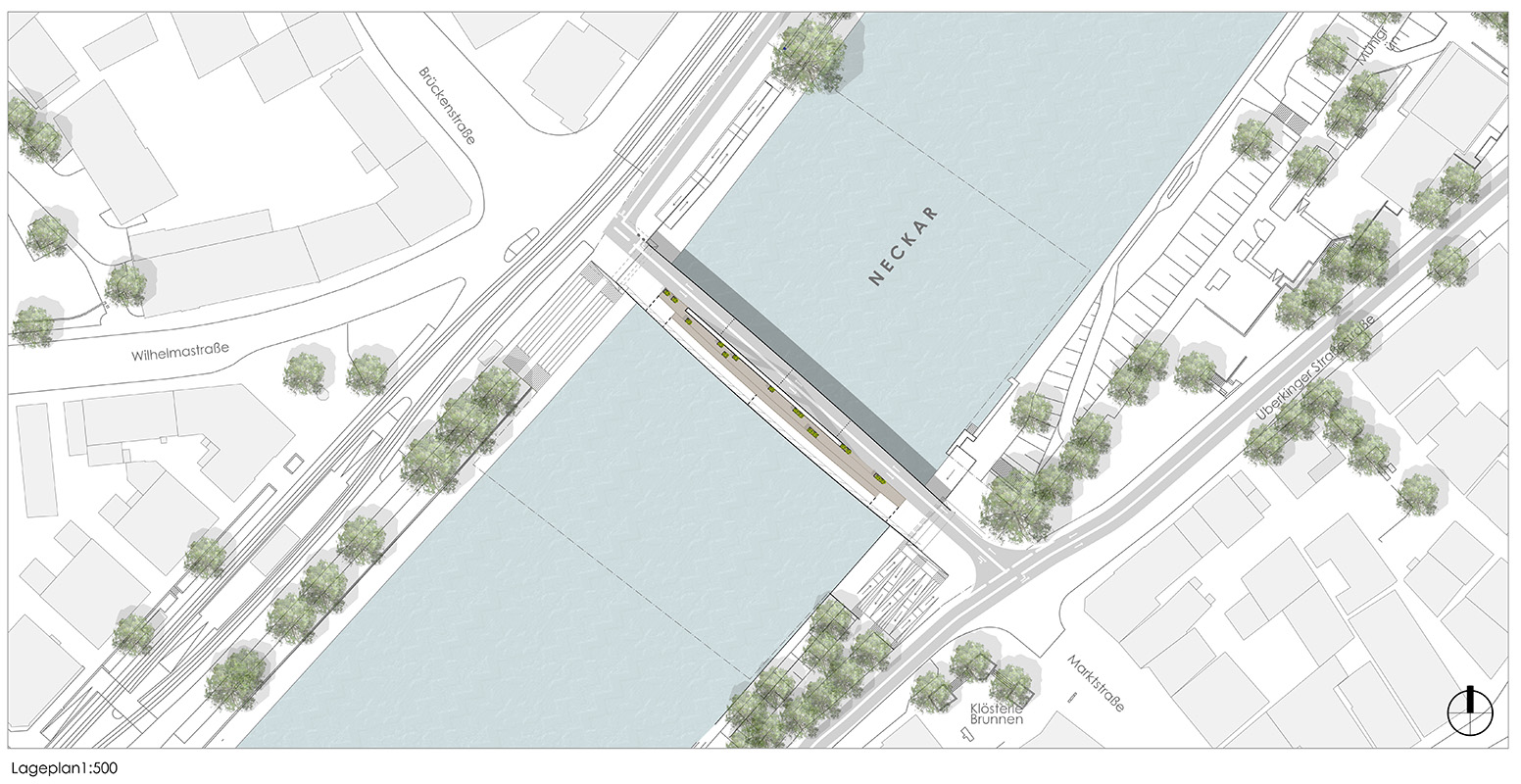 Im Zuge der umfassenden Transformation des Neckar-Knies von einer industriell geprägten Durchgangszone zu einem vielfältig nutzbaren, öffentlich zugänglichen Stadtraum verändert sich auch die Rolle der Wilhelmsbrücke grundlegend. Neben dem Erhalt als technisches Querungsbauwerk wird sie zugleich zu einem Ort des Aufenthalts, der Verbindung und des räumlichen Ausdrucks. Die Brücke wird nicht mehr als rein funktionales Infrastrukturelement verstanden, sondern selbst Teil einer lebendigen Stadtlandschaft über dem Wasser.