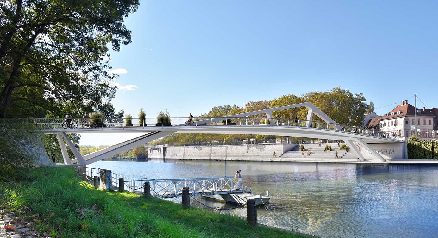Die Wilhelmsbrücke steht in diesem Entwurf exemplarisch für eine neue Art von Stadtinfrastruktur: Sie ist Brücke und Raum zugleich. Sie verbindet nicht nur Ufer und Stadtviertel, sondern auch Nutzungen, übersetzt konstruktive Herausforderung in Aufenthaltsqualität, landschaftliche Einbindung in bauliche Prägnanz.